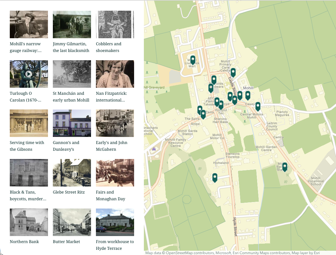 Drawing on a consultation process in 2024, the storymap focuses on Mohill as a market and trading town in the 20th century, and especially on the ordinary people who made their lives and livelihoods here. The stories include multiple images and web-links. Some include voice recordings, music and video.